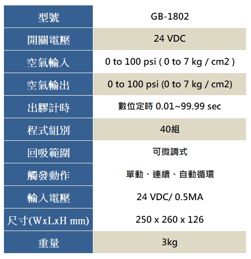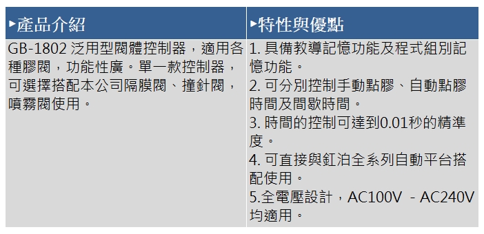 > 點膠機 / 膠閥控制器 > GB-1802 互動式噴霧膠閥控制器