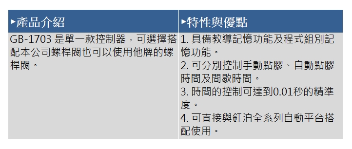 > 點膠機 / 膠閥控制器 > GB-1703 螺桿膠閥控制器